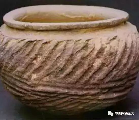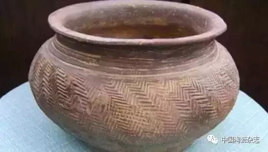 在陶拍上缠上草、藤之类绳子,在坯体上拍印而成的印痕,有粗绳纹和细绳纹两种。
