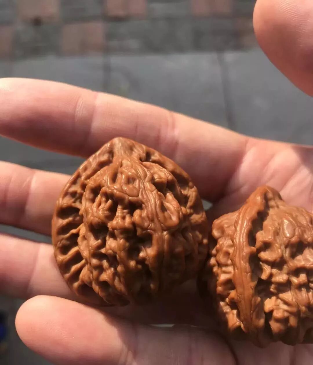 根据手掌皮肤分泌汗液和皮脂量的多少,肤质也分为好几种,不同肤质盘玩出来的文玩核桃挂瓷状态也会有所不同。例如汗手的核友,由于自身手部汗液较多,文玩核桃挂瓷也会非常快!