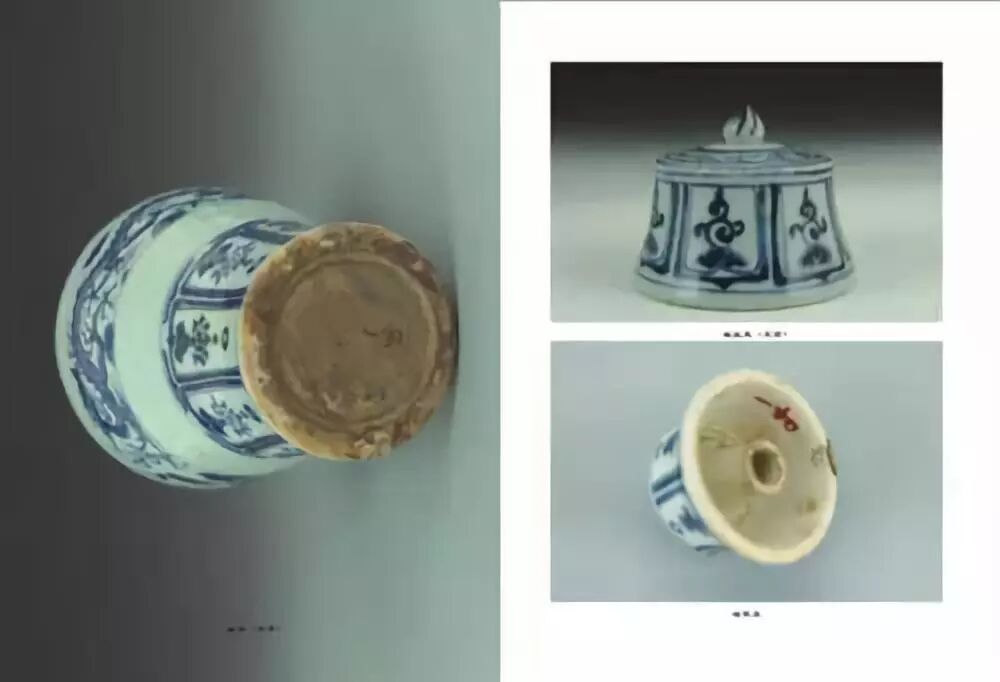 如一些元青花和釉里红小件器物的绘画与印花相结合装饰的器物均采用印坏成型,工艺痕迹明显,这一现象毋庸置疑。