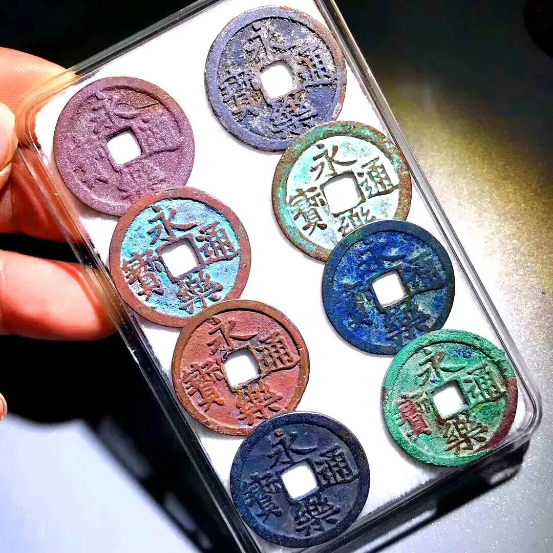 邻国永乐通宝一般直径较小,面文字体有所区别(遒劲感差),市场价格低于国产永乐,大家购买时一定要注意区分。