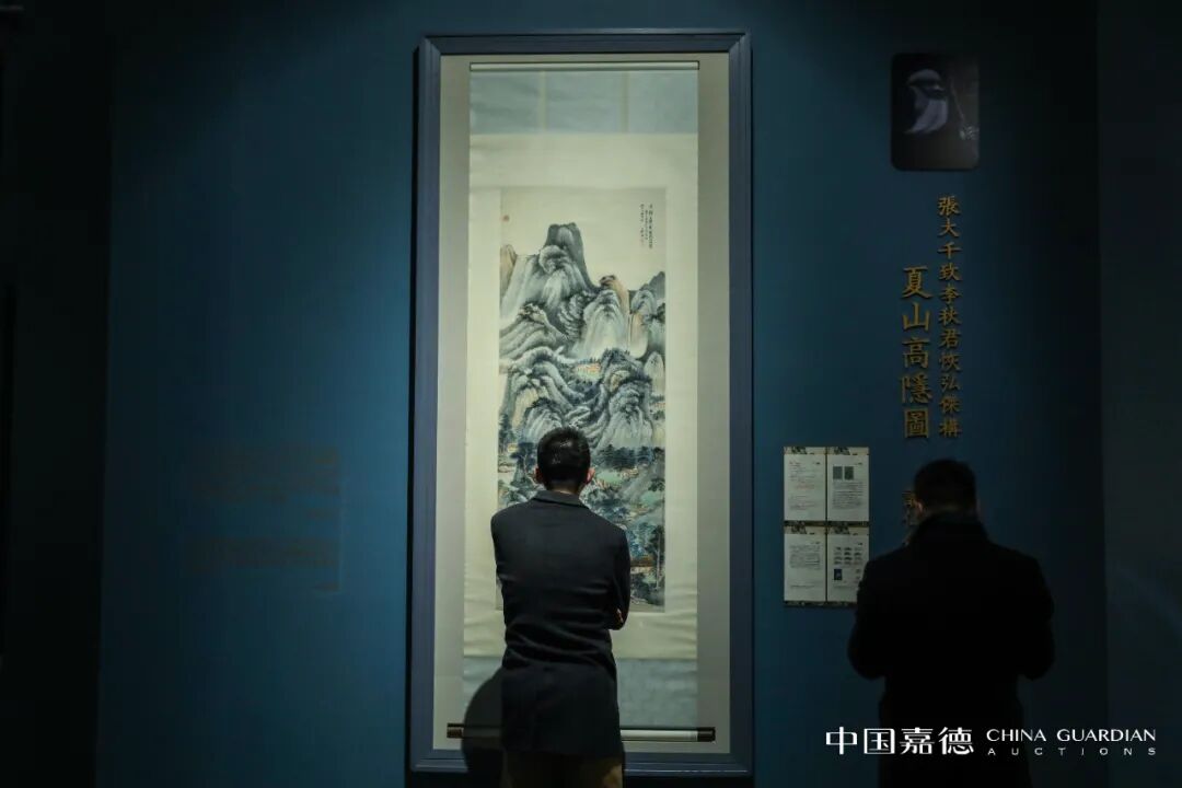 张大千的两件巅峰巨制《夏山高隐图》和《秋曦图》,分别代表了张大千盛年摹古精妍和晚年泼彩捭阖的最佳状态,经多年秘藏后首次精彩合璧,自然是吸睛无数。溥儒平生第一的山水巨制《松岩访友》,高逾三米,笔势纵横,也吸引了众多观众的仰望。