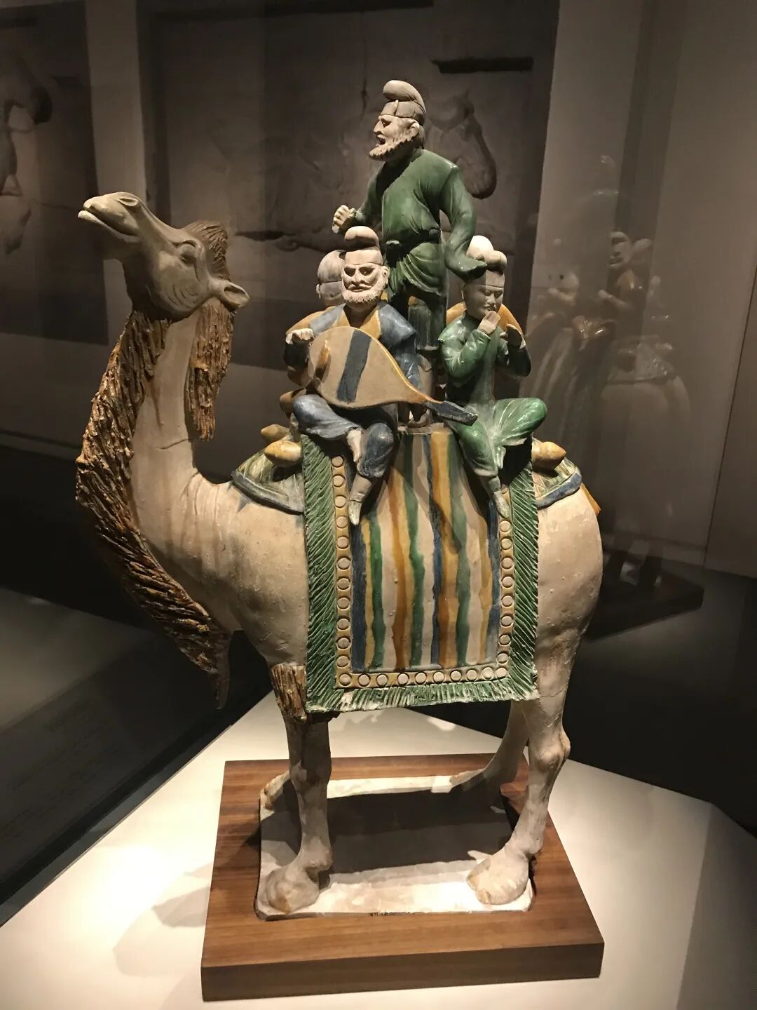 作为丝路上的重要交通工具,“沙漠之舟”骆驼被誉为丝路的象征,驼铃叮当声响彻丝路沿线。盛唐时出土的骆驼俑,造型新颖多样,刻画了“丝绸之路”上驼队商人的各种形象,杜甫曾写道“羌女轻烽燧,胡儿制骆驼”,反映了这一时期中西交通和对外贸易的繁荣。