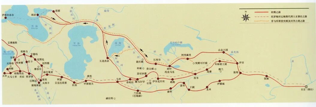 汉唐时期的陆上丝绸之路东西延绵上万公里,是汇聚东西文明的大动脉。众多的伟大发明、多元的文化与宗教都通过丝绸之路传向四面八方。