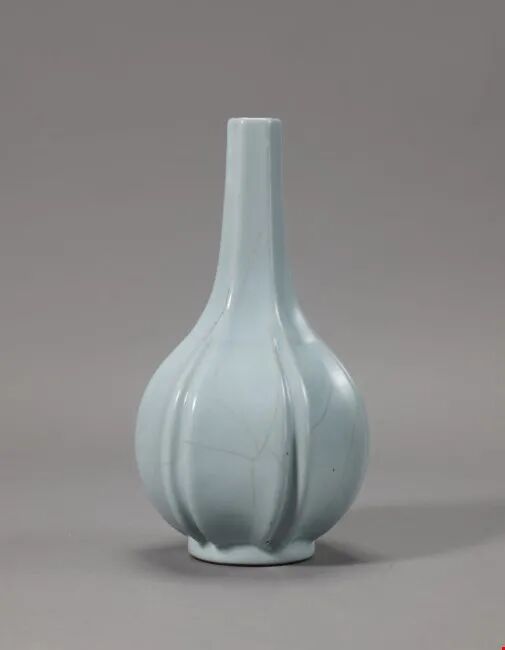 清雍正 仿官釉五瓣瓜棱瓶 六字篆书款