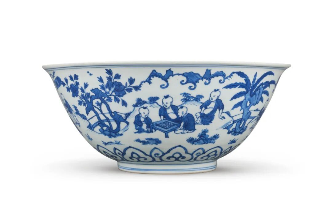 明万曆 青花十六子婴戏图大盌
