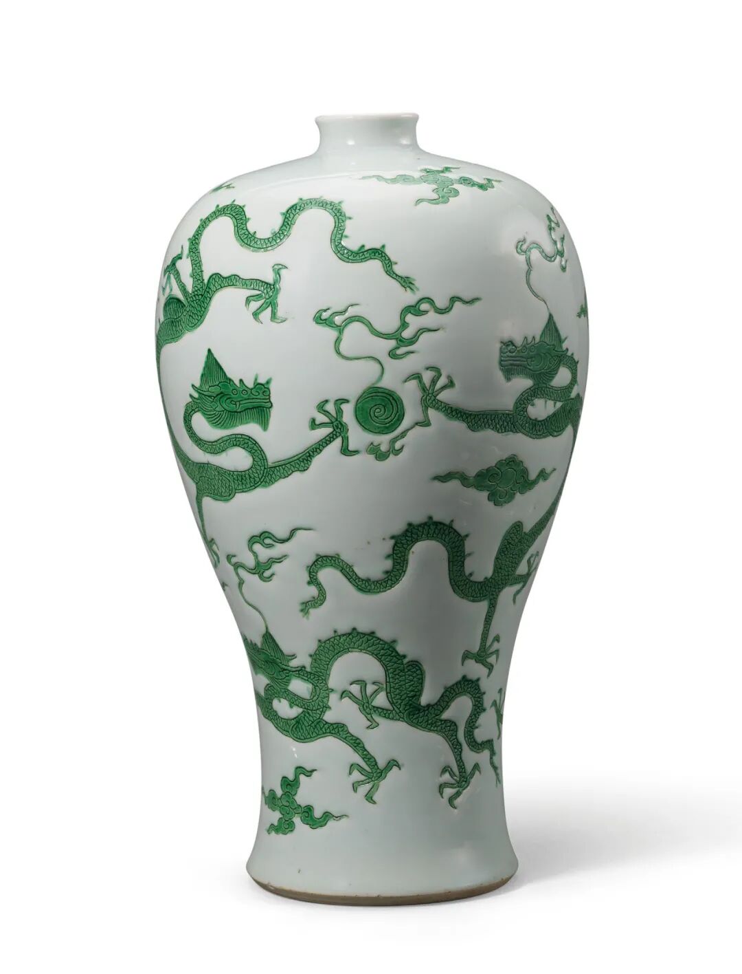 清康熙 白釉绿彩暗刻龙纹梅瓶