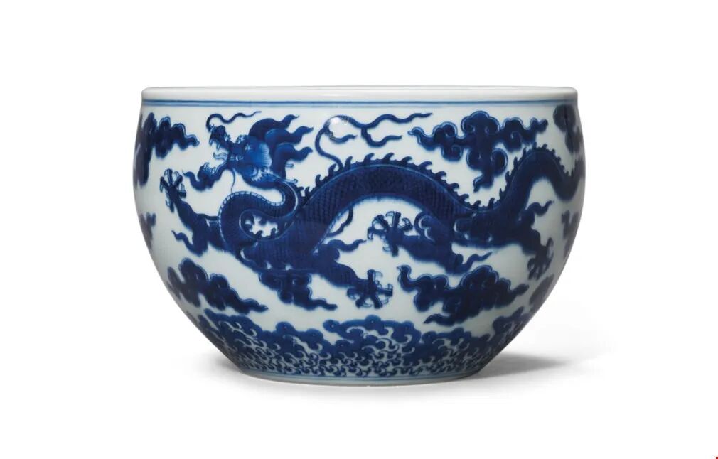 清乾隆 青花双龙纹案缸 六字篆书款