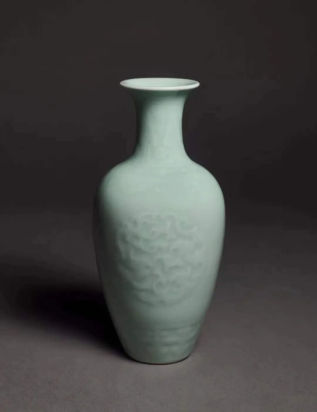 清乾隆 粉青釉凸花团螭纹观音尊