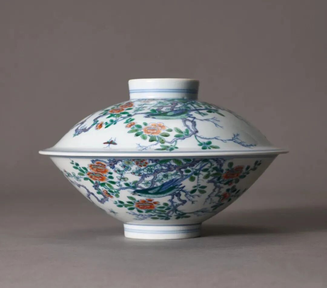 清雍正 斗彩喜上眉梢纹盖碗