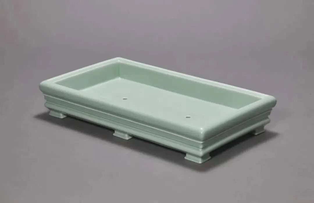 清雍正 粉青釉弦纹长方花盆