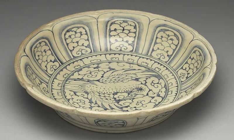 以1425年至1450年为中心,越南生产出双鸟纹盘和天球瓶等最高质量的青花瓷。探究其背景,有人说是受到中国元明青花瓷的影响。然而,与其说越南青花瓷是直接模仿中国青花瓷,不如说是经过纹饰要素的选择和演变,并且进行独特组合后的产物,是越南主动地进行综合整理的结果,这一点仅从有限的资料上就可得以证实。