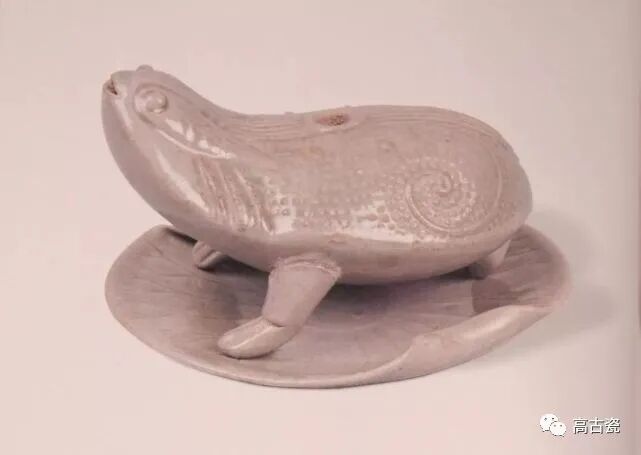 出土和传世的宋代蟾形水滴很多,如1983年浙江慈溪文物部门征集的北宋越窑青釉蟾盂,造型别致,三足蟾昂首立于荷叶之上,蟾背上有一灌水圆孔,蟾嘴留口,用于出水。
