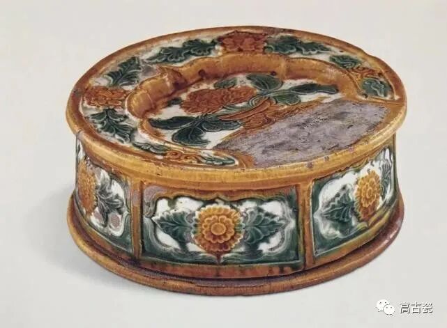 辽 三彩印花牡丹纹砚洗(砚扣于洗之上) 现藏于赤峰市博物馆