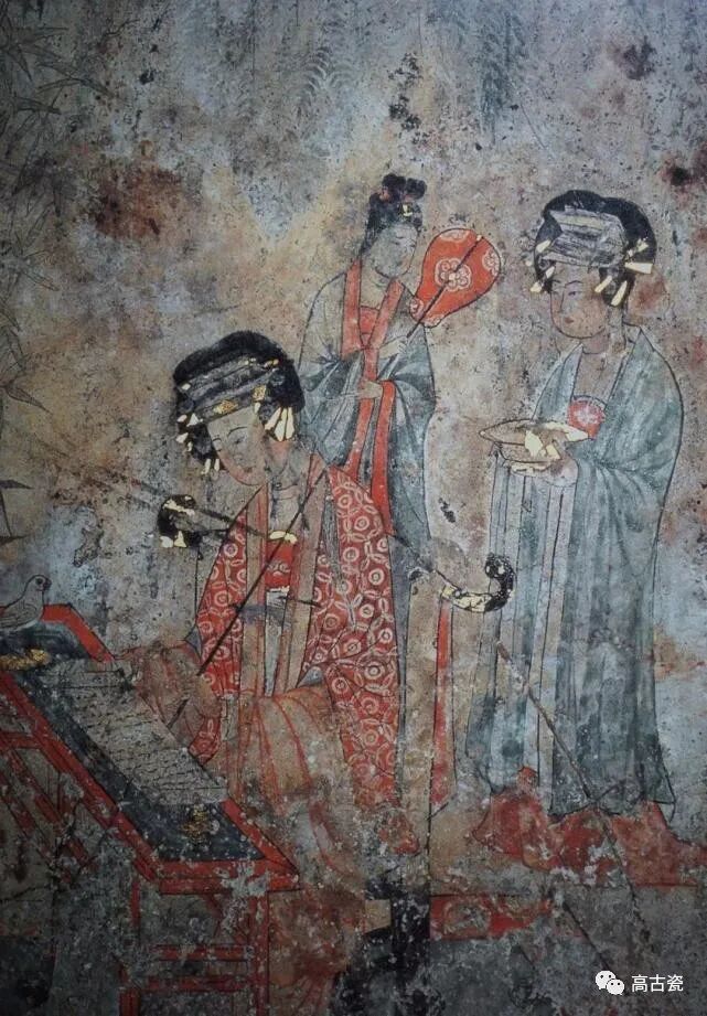 赤峰辽墓壁画颂经图中,在抄写经文的贵妇身后,侍女捧洗侍奉;河南尉氏县元墓壁画进仓图中,官员身后一个童子捧洗而立。