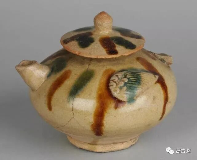 唐 长沙窑青釉褐绿条彩纹水注 高9厘米 长沙窑遗址出土 现藏于湖南省博物馆