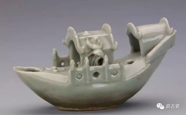 元代传世、墓葬和沉船出土、出水的实物非常多,如龙泉窑青釉船形砚滴,形状塑作船形,船中部有篷及身披蓑衣的船工,船仓下部中空,船头为流口,构思精巧、制作精良。