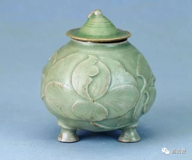 北宋 耀州窑青釉剔花三足带盖水盂 现藏于陕西历史博物馆
