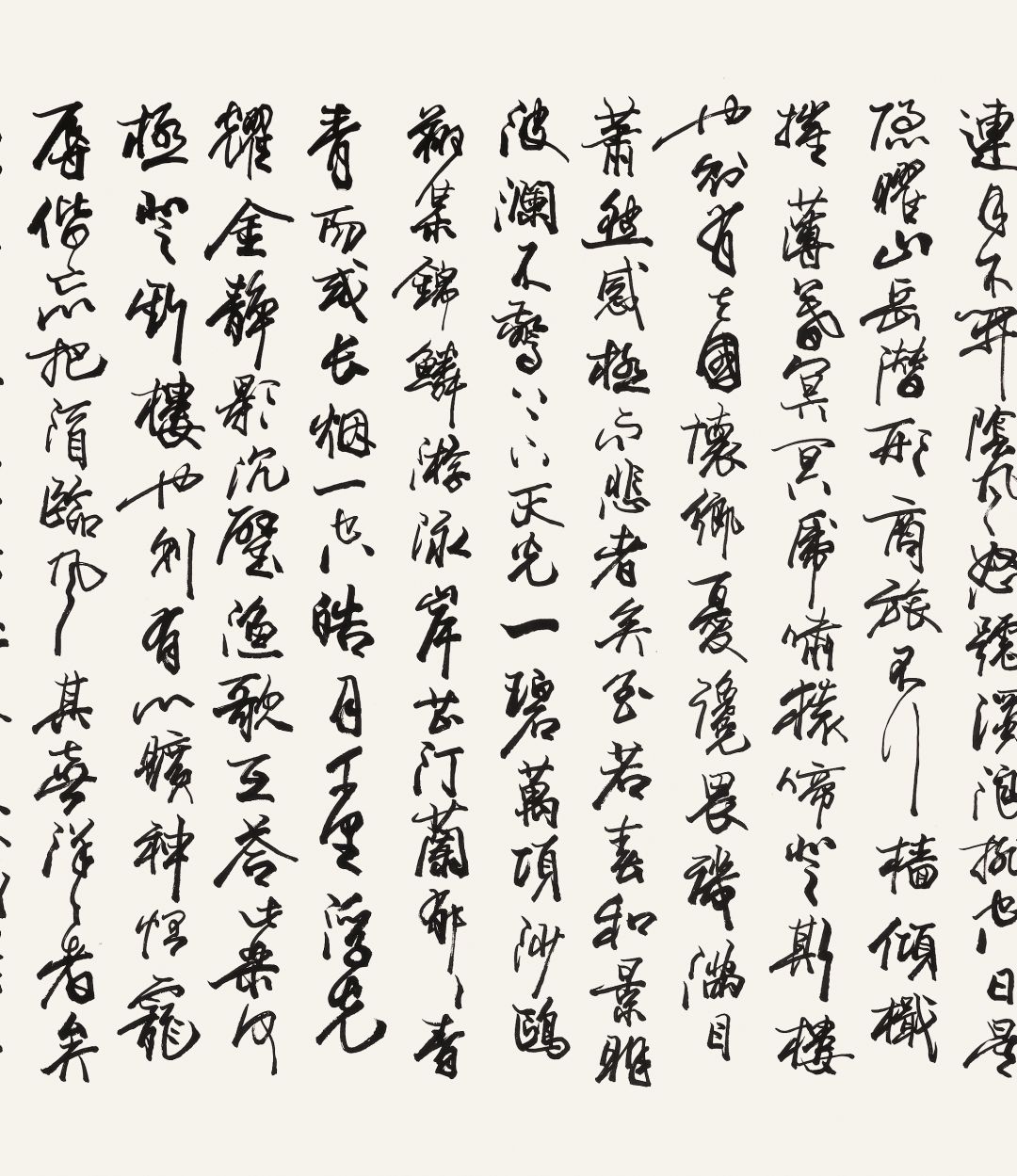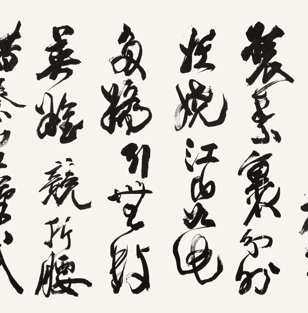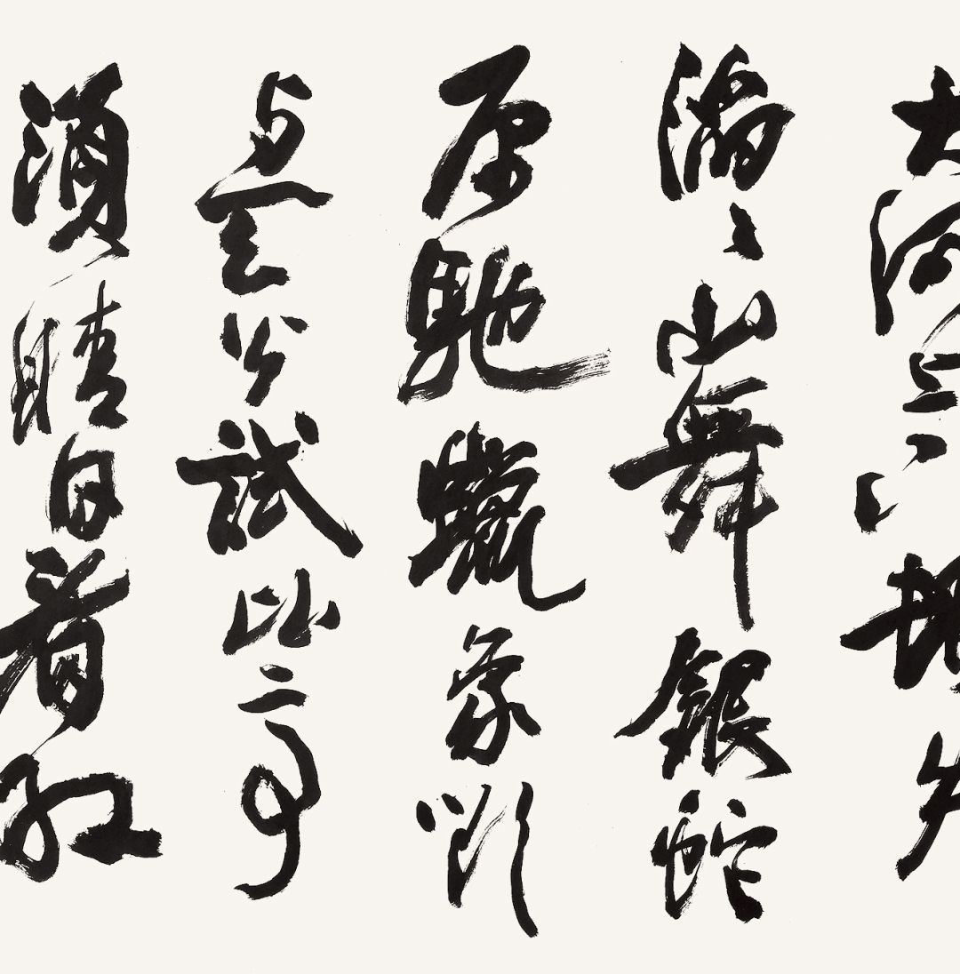 此外,我们还遴选了自舒同以降中国书协的历任主席副主席的数十件作品。其中沈鹏书赠委托人的《草书杜甫蜀相诗》颇能代表其该时期书风,枯墨润墨交错,快笔慢笔杂行,合圆转歧侧方磔于一体,直是大家风范。军旅大书家李铎《行书毛主席词》及欧阳中石两件行书均系巨幅,李书气势恢宏,欧书则流丽婉转。
