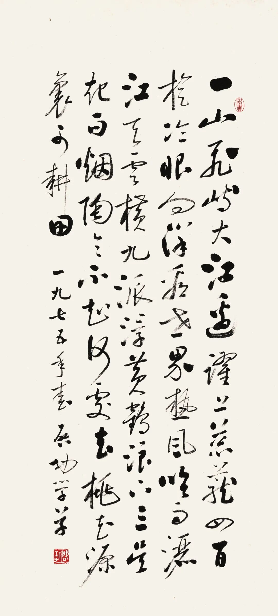书名为令名所掩的赵朴初,人颇有东坡气,书亦学东坡法。《行书端砚五言诗》一帧,满纸烟云气,变幻明灭,而峥嵘吐露,了无做作,是已臻化境。由上款人夏琫瑛家属提供的林散之所赠《草书毛主席长征诗》笔走龙蛇,是散翁艺术人生晚期的杰构。