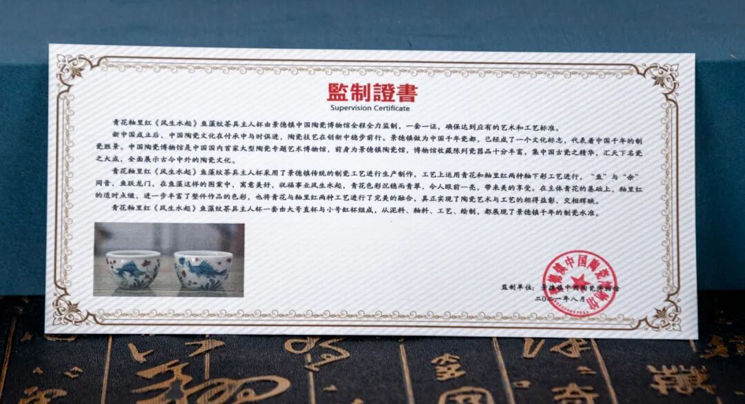藏品附有专门的监制证书和创作证书,一物一证,确保每套杯子都达到应有的艺术和工艺标准。