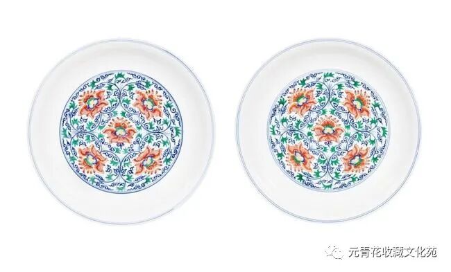 Lot 41 清雍正 斗彩宝相番莲纹盘一对