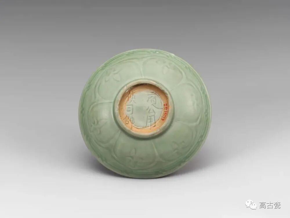 TOP42 明永乐 龙泉青釉刻折枝花果纹墩式盌