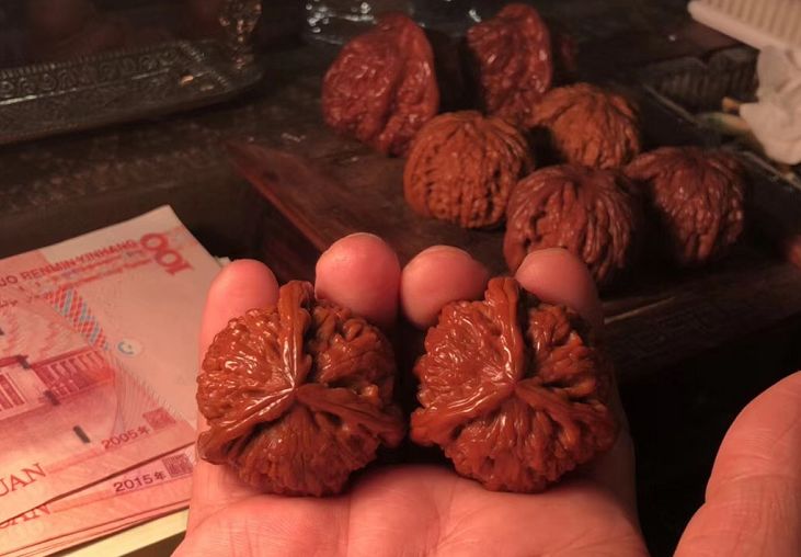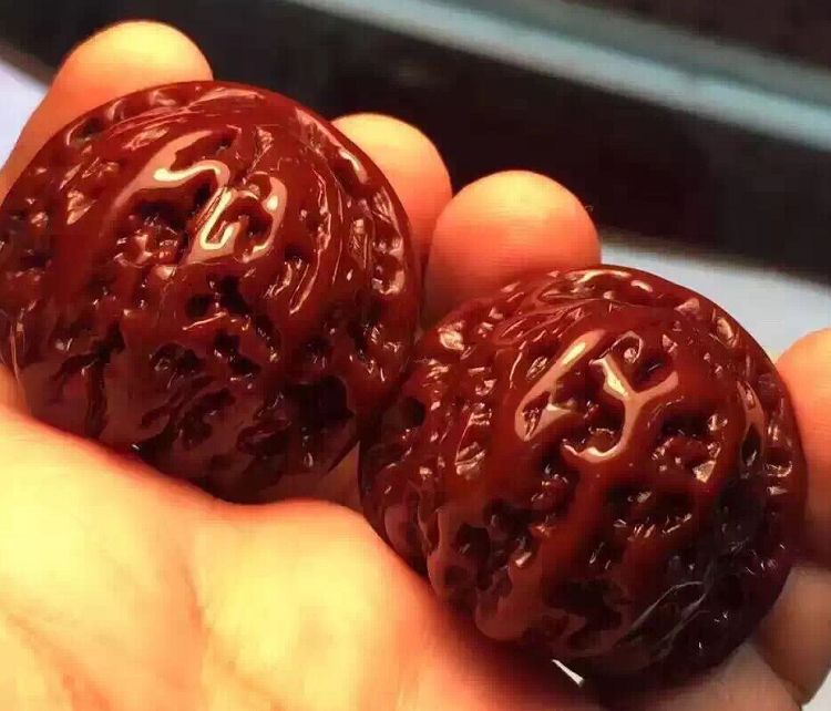 喜欢文玩核桃的朋友,每天都要在手里文盘,所谓文盘,就是两个核桃不能摩擦的盘玩,大家知道,核桃是圆形的,稍加不注意,就容易掉地上,尖一下磕掉了,伤心极了,所以玩核桃的迷友盘玩,需要练出杂技的本领哈。
