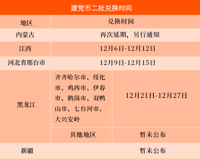 建党币二批的兑换安排如下: