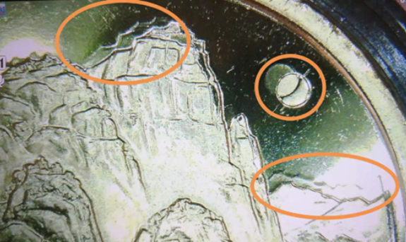 虽然很是少见,这种有明显铸造“缺陷”的纪念币,也曾偶然出现在5元泰山币上。
