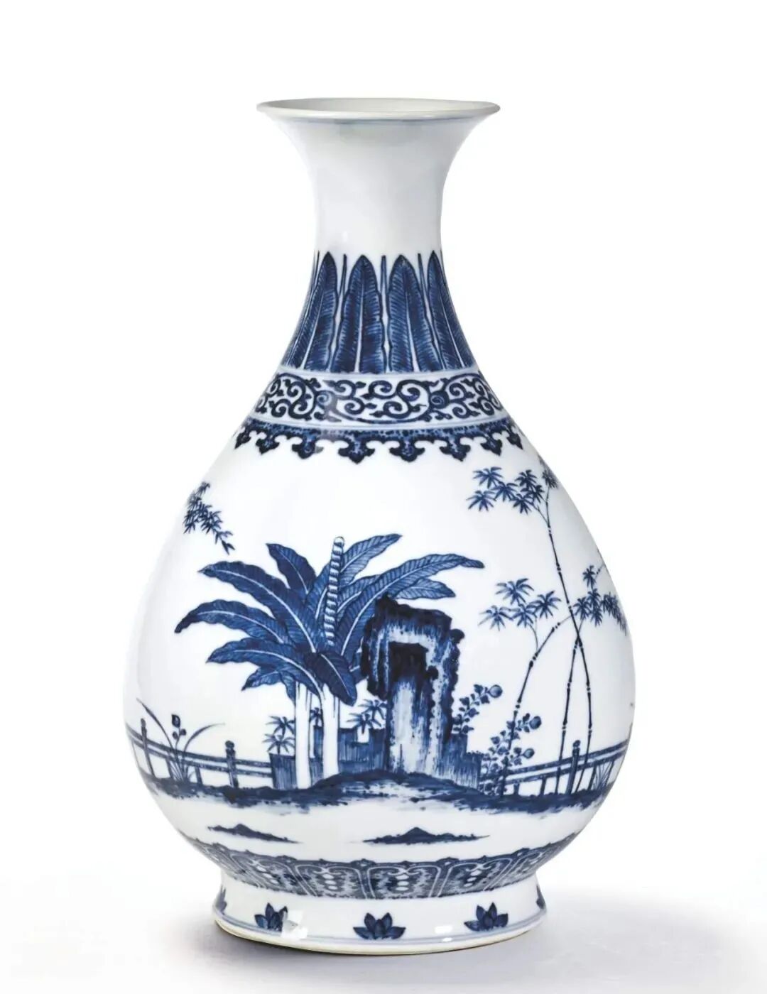 清乾隆 青花竹石芭蕉纹玉壶春瓶(5.6万)