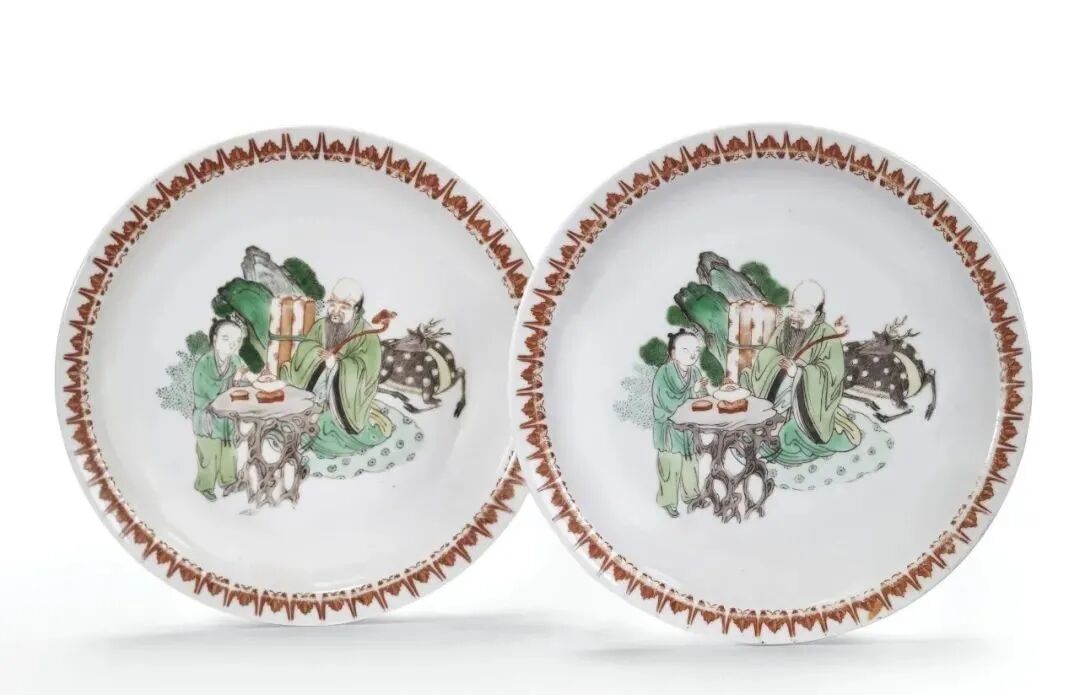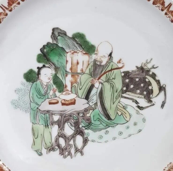清康熙 五彩寿老图盘(8.1万)