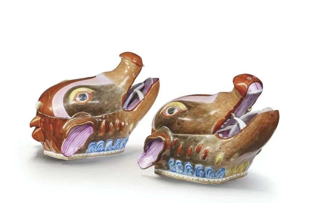 清乾隆 粉彩野猪头形带盖汤盆(16.3万)