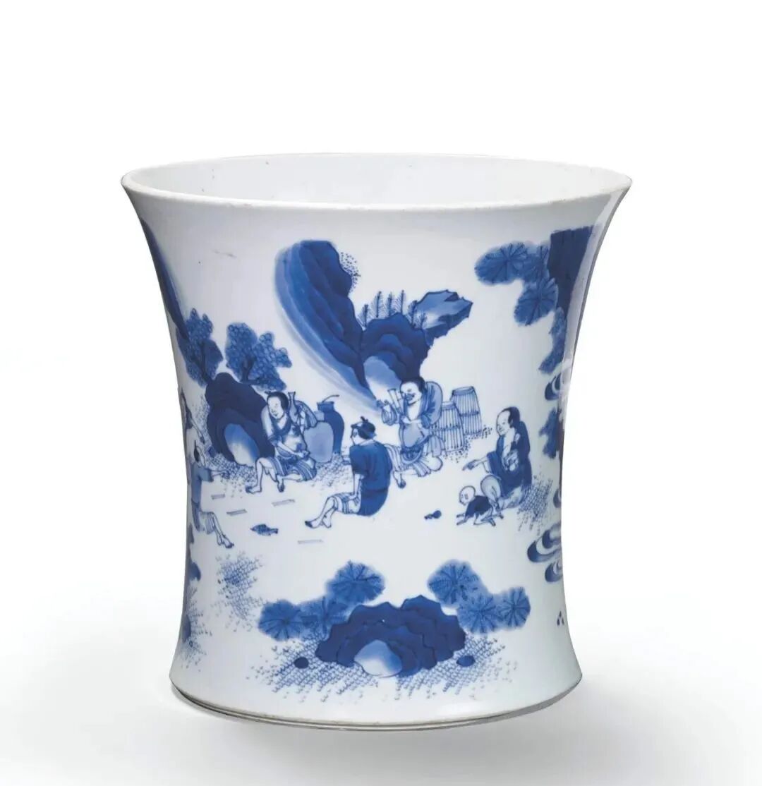 明末清初 青花人物故事图纹大笔筒(10万)