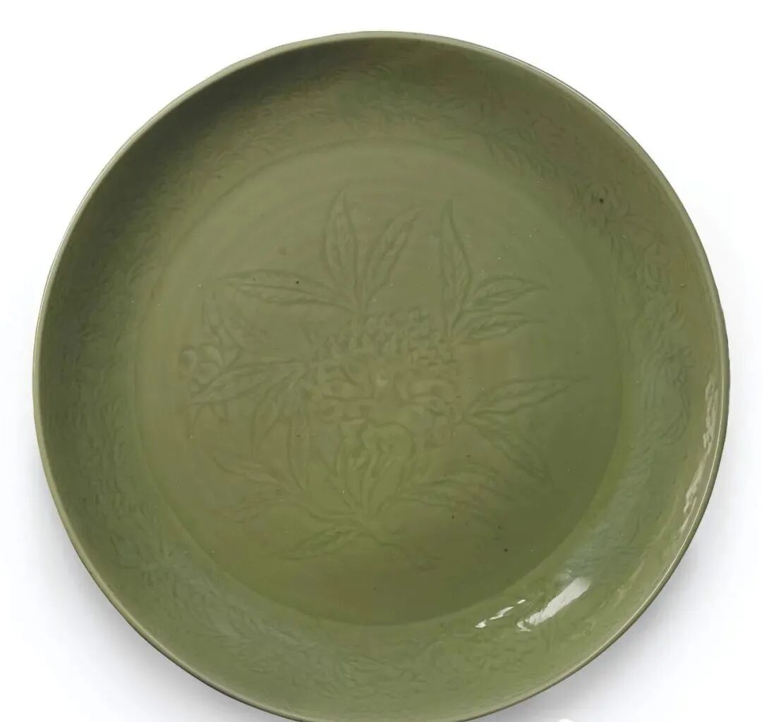 明初 龙泉青釉花卉纹大盘(4万)