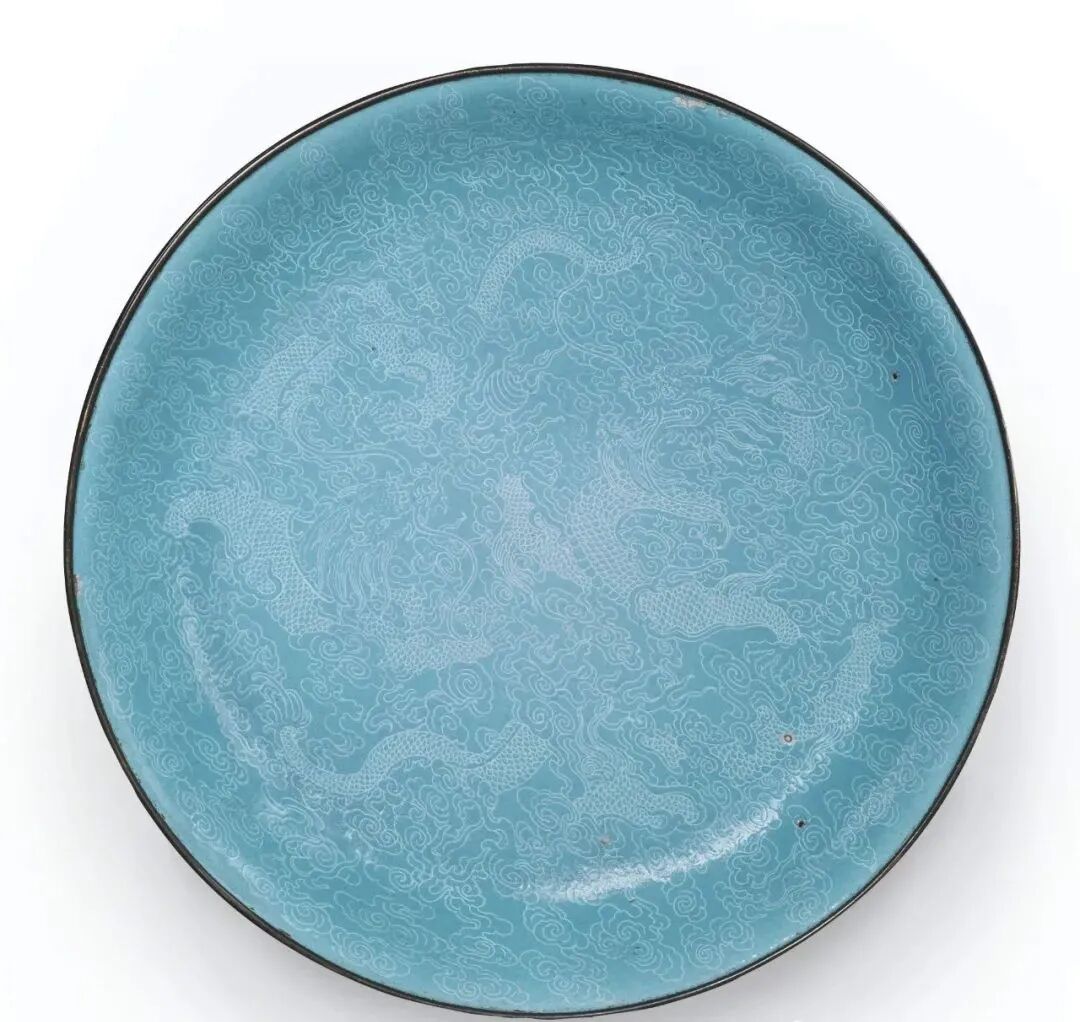 清中期 内填珐琅龙纹大盘(3.3万)