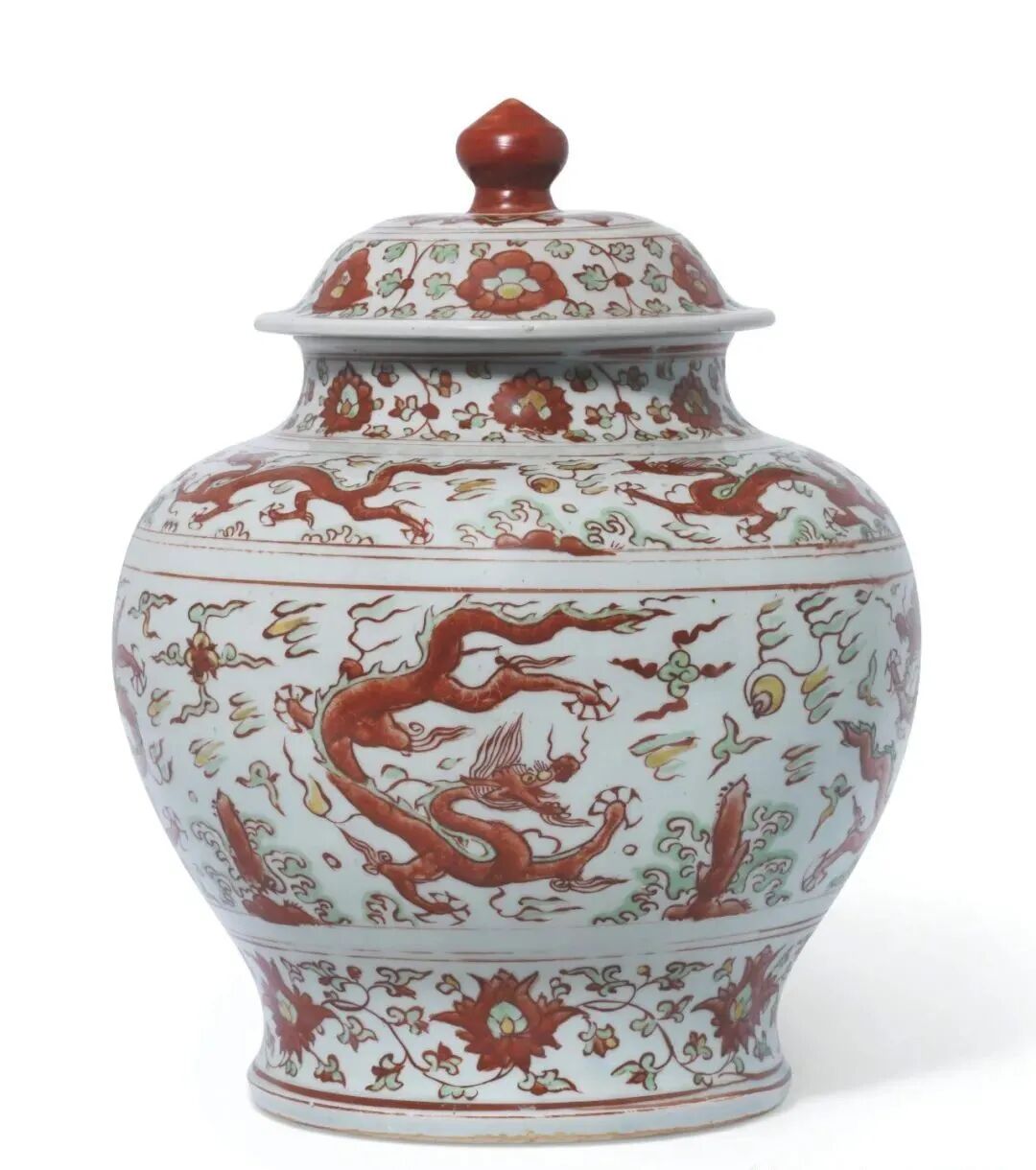 明十六世纪 五彩双龙赶珠纹盖罐(4.8万)