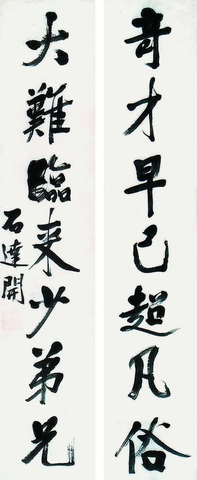 我们看下图,是王石达开书法代表作“戎功久著今天下,高谊咸称古佐臣。”字里行间,书法味道全有了!笔法到位、结体宽博、气势开张、对比强烈、变化丰富…石达开为什么能写手好字?因为他从小读书、练字。