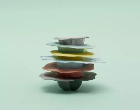 最终的结果是不可控的,由染色泥浆不可预测的自发运动和烧造时的条件决定。完成之后,这个“液体”系列不仅是功能性的,而是可以堆叠出无尽的变化,来创造独特的,图形化的组合效果。