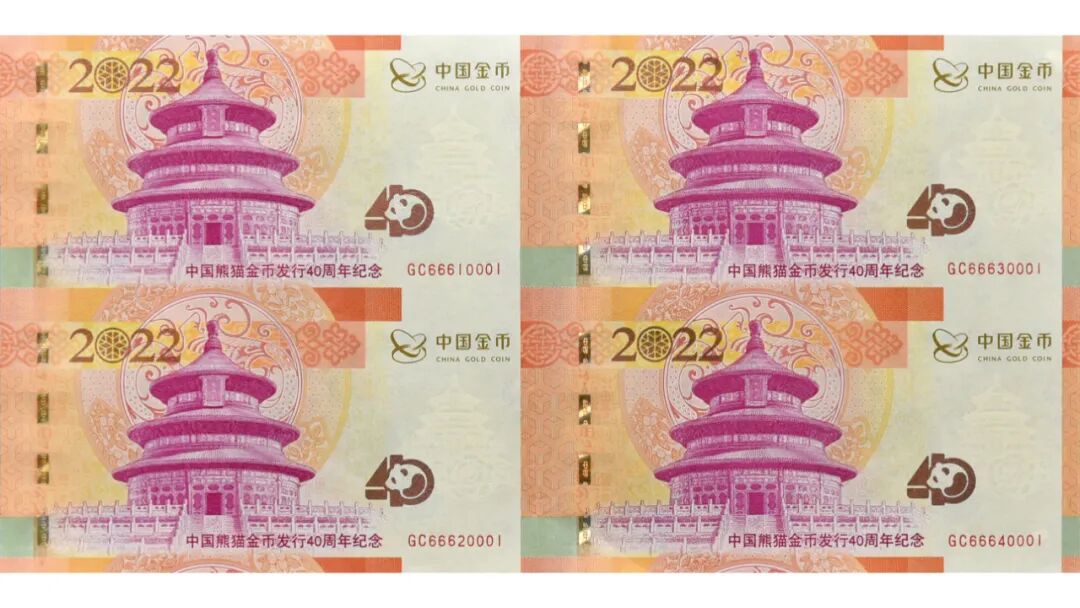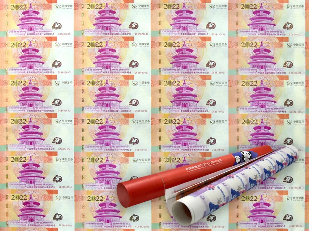 为纪念中国熊猫金币发行40周年,中国金币集团有限公司(原中国金币总公司)与中国印钞造币总公司联合发行“中国熊猫金币发行40周年纪念券”。