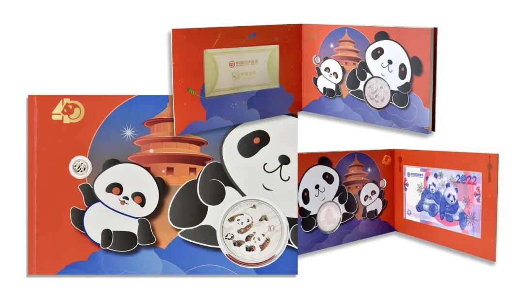 2022版熊猫普制1克铂币、2022版熊猫普制30克银币、中国熊猫金币发行40周年纪念券组合