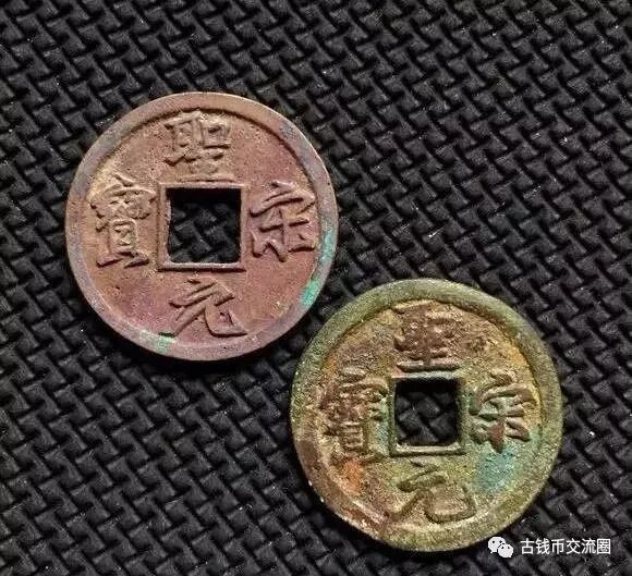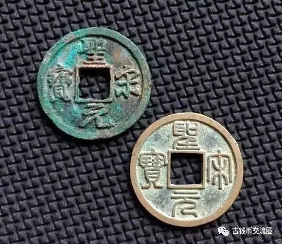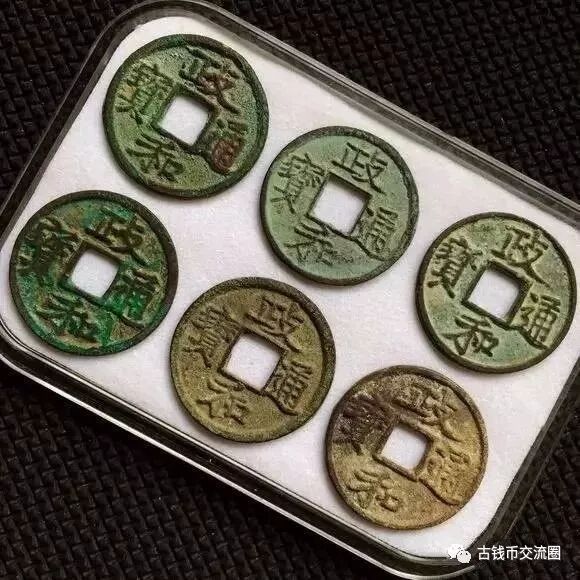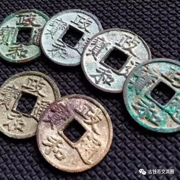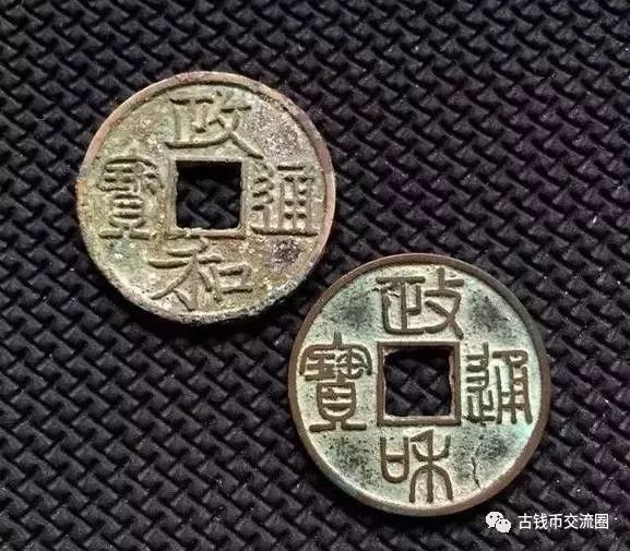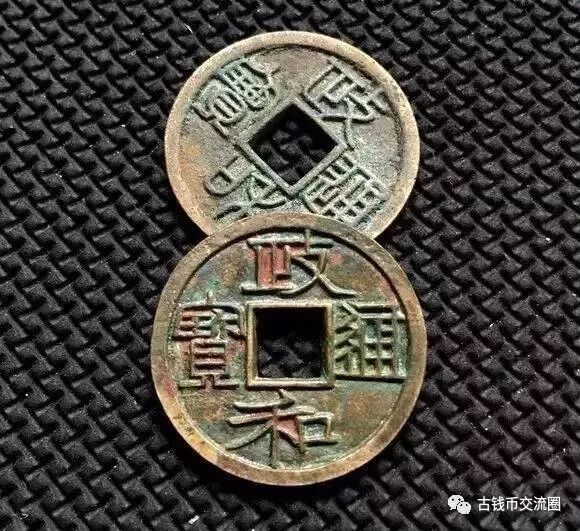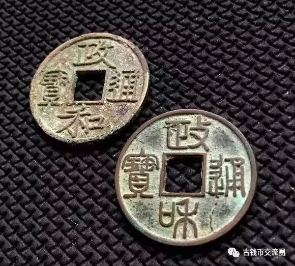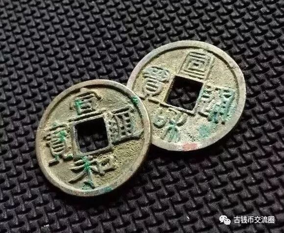 大字长宝一对。其实《符合泉志》里都叫重和样。但在北宋谱里又细分为大字与大字长宝二版。但个人认为此二版最明显的区别在“政”和“通”这两个钱文之上,图中可辨。