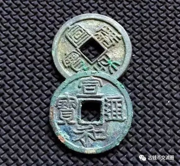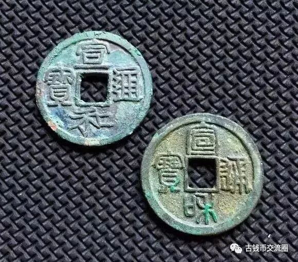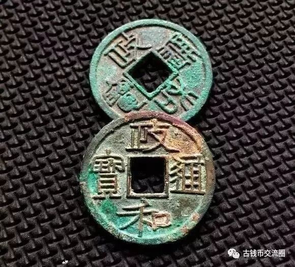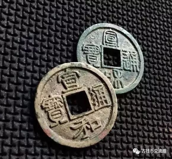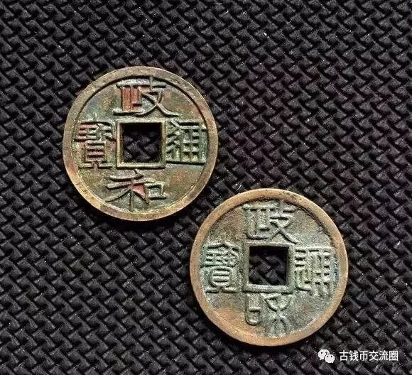 大字一对,又名重和样。喜闻乐见的名誉版。也是个人认为政和中最漂亮的版别。钱文周正,铸造极美,疑为京局。价格高昂,美品动辄数百,锈色艳丽者过千亦不稀见!