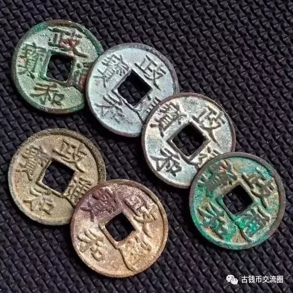 一眼可辨且作为北宋谱政和开篇之版别。楷书类虽然制作不精,但还是收到不少徽宗玩家的喜爱。不仅其钱文清秀,也因是版虽不稀见但却好品难求,凑成一套颇有成就感。楷书大字7级;楷书抱政7级;楷书中和7级;楷书遒劲真书6级;楷书接郭7级;楷书狭穿7级。