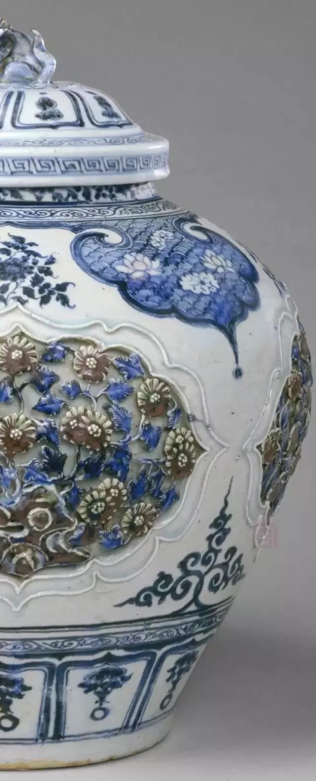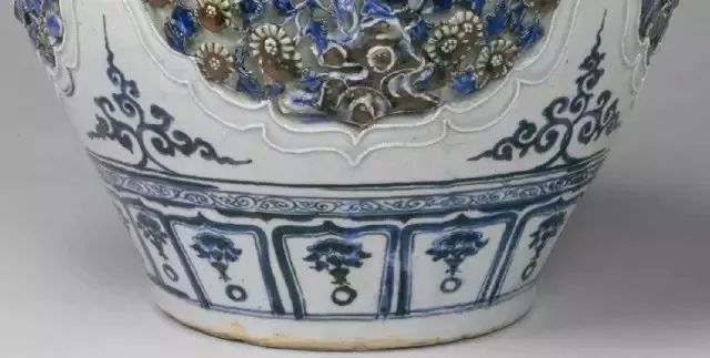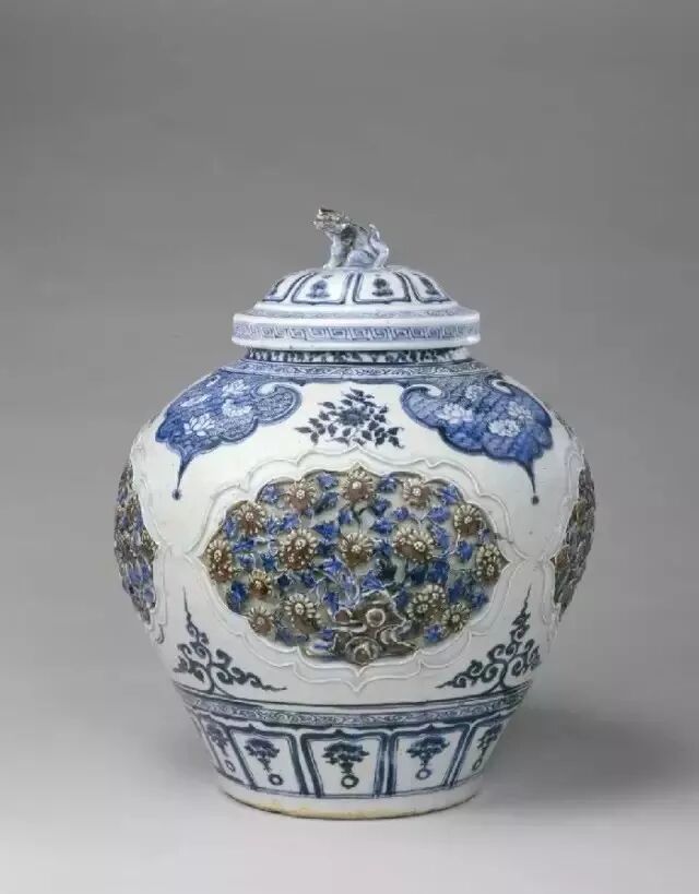 粗略看了一遍元瓷,是不是让你对这个曾经误会颇深的朝代有了少许改观?元代瓷器的精彩表现,离不开一个很重要的机构——“浮梁瓷局”。听这名字你也许会觉得陌生,但要是说出它的另一个名字,你也许就会发出“哦……原来是你”的感叹。1278年,元朝将统辖全国贡瓷的惟一官方管理机构――“浮梁瓷局”设在了一个小镇,看似仓促的决定,却真正地左右了历史。直到今天,可能全世界很多人的日常都离不开这个以生产瓷器著称的城市,没错,她即是景德镇。至于元朝政府为什么如此火急火燎地设置“梁瓷局”,有很多原因,除了景德镇在宋代就已具备高超的制瓷基础,如闻名后世的“饶玉”(即湖田青白釉瓷)外,可能更在于某些现实的紧迫。战争、恢复国家机器、稳定民生都需要钱,而除了搜刮宋氏财富外,唯有加大贸易了。而贸易,在古代的中国,除了丝绸、茶叶,剩余大宗便是瓷器了。只不过,景德镇浮梁瓷局的产品是供皇家宗亲享用的,为贸易服务而生产的瓷器并不多。很多人提到元朝,变会将它与“毁灭汉族文化”联系起来,其实是不对的。源于宋代的很多制瓷窑口并未随着江山变动而消亡,反倒进入新时代后扩大了生产与提高了技术水平。例如,海外瓷器贸易的主流——龙泉窑青瓷,不仅解决了烧制大件器物的难题,还新采用点褐彩、镂空、模印以及露胎与模印相结合的新工艺,在内容展现上,大量人物戏曲故事也开始进入龙泉窑的素材范围;