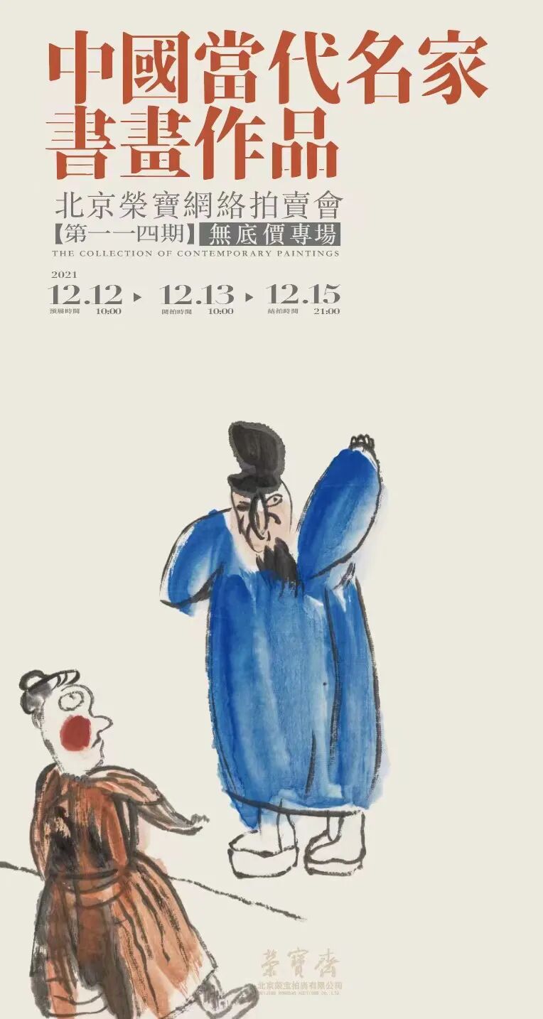 北京荣宝·当代名家书画作品无底价专场网络拍卖会(第一一四期)将于12月12日10:00—12月13日10:00开启线上预展,并于12月13日10:00开拍,12月15日21:00结拍。