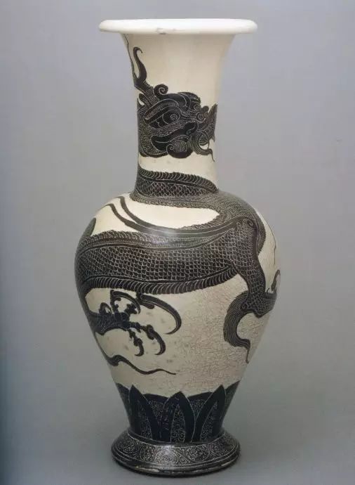 宋 黑剔花龙纹长颈瓶