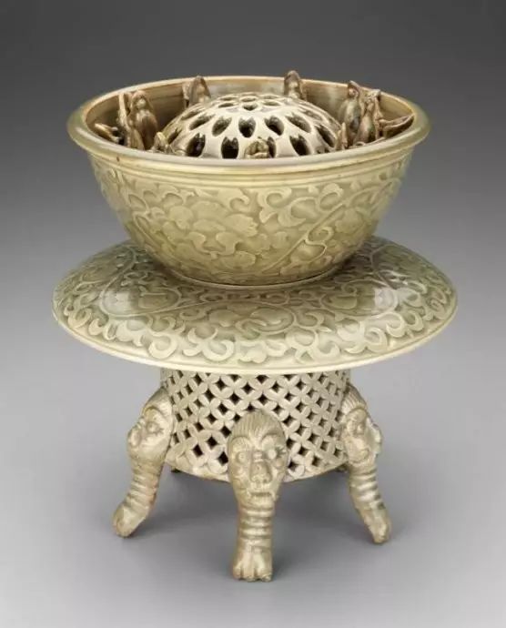 宋 耀州窑刻花镂空三足香薰