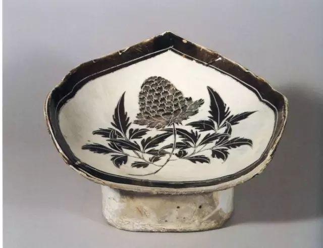 宋 黑剔花折枝牡丹纹荷叶形枕
