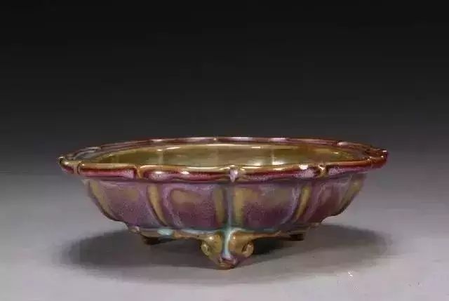 宋 钧窑玫瑰紫釉菱花式三足花盆托