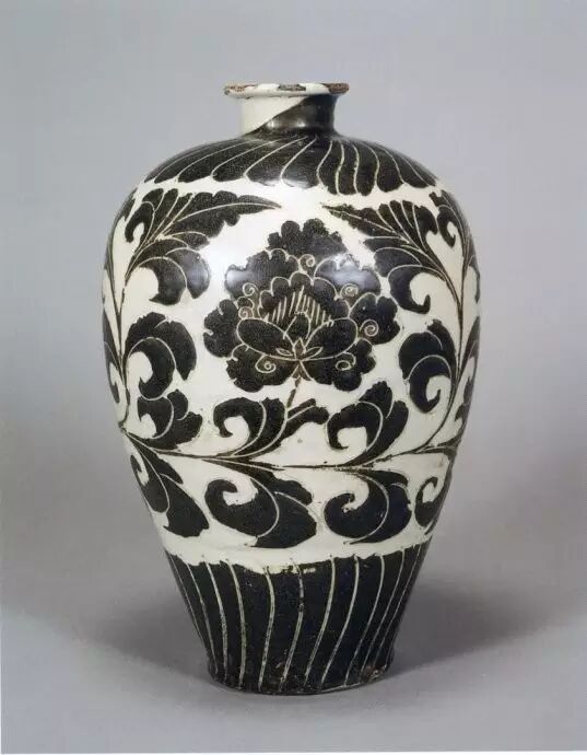 宋 黑剔花折枝牡丹纹梅瓶